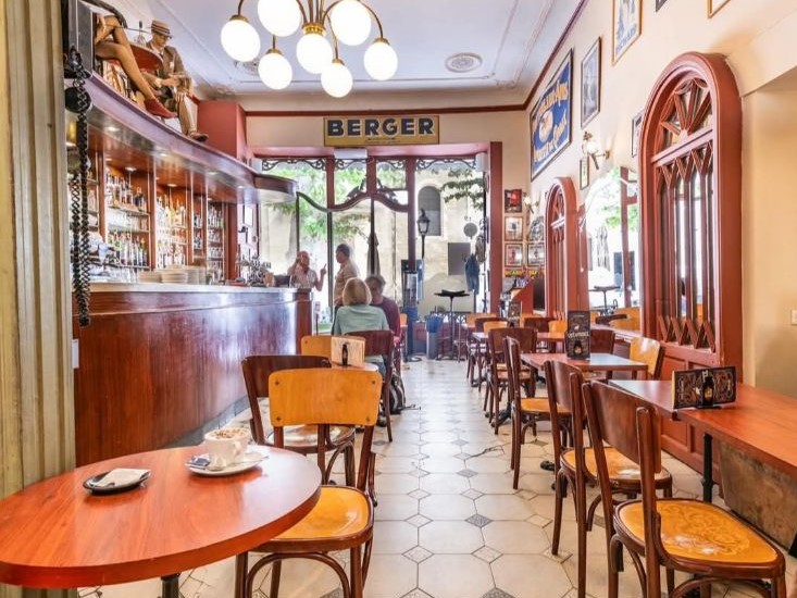 Lassen Sie sich von der zeitlosen Atmosphäre bei einem Kaffee, einem Glas Wein aus der Region oder französischer Bistrot-Küche verführen. Genießen Sie Momente aus der Vergangenheit in den Innenräumen oder die Süße der Provence auf der Terrasse.