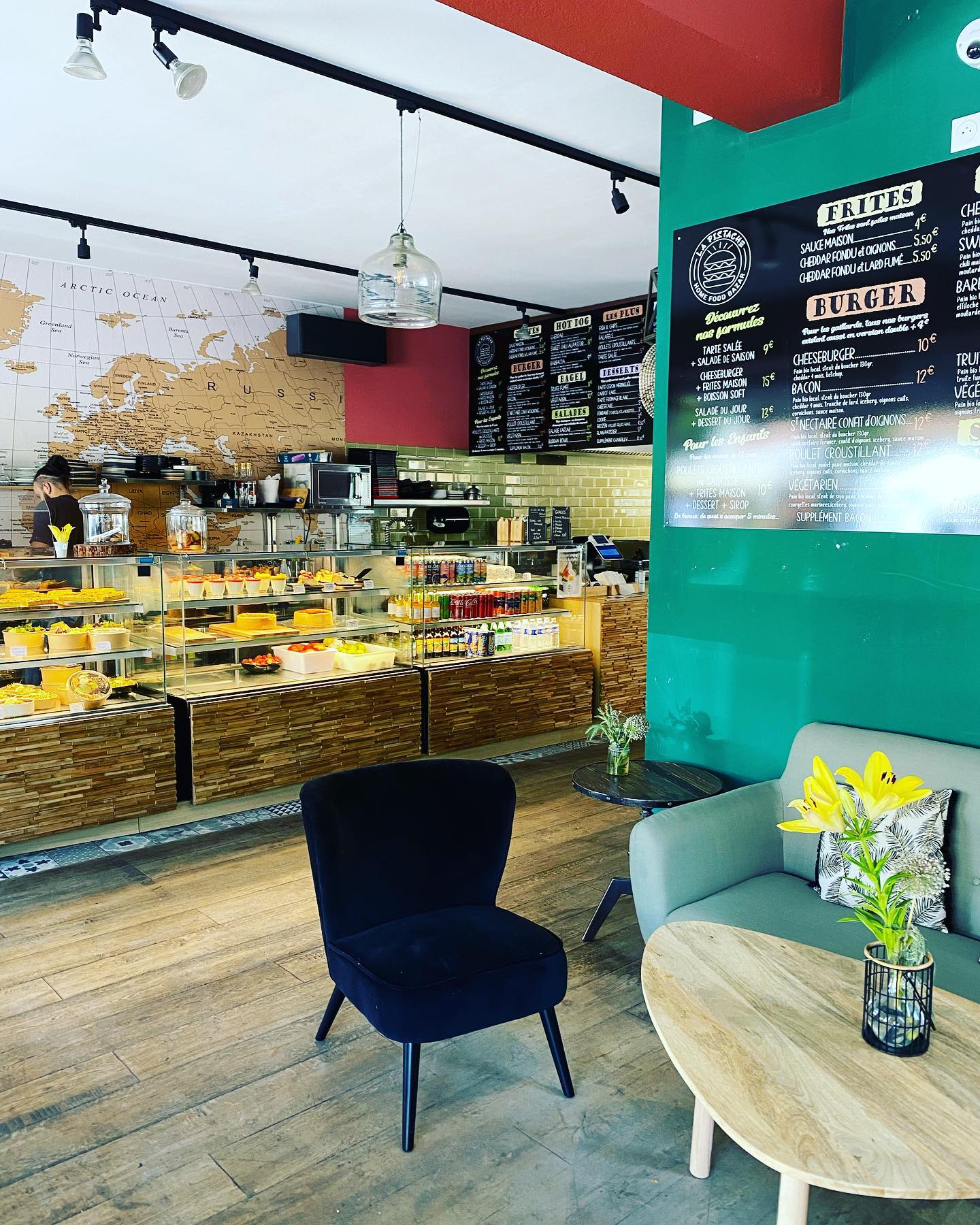 Genießen Sie schnelles, gesundes und leckeres Essen in einer bezaubernden und einladenden Umgebung. Vergnügen und Qualität garantiert. Genießen Sie auch die versteckte Ecke im Obergeschoss, eine Oase der Ruhe, die einen herrlichen Blick auf die Stadt bietet! Ideal, um in aller Ruhe eine Mahlzeit zu genießen.