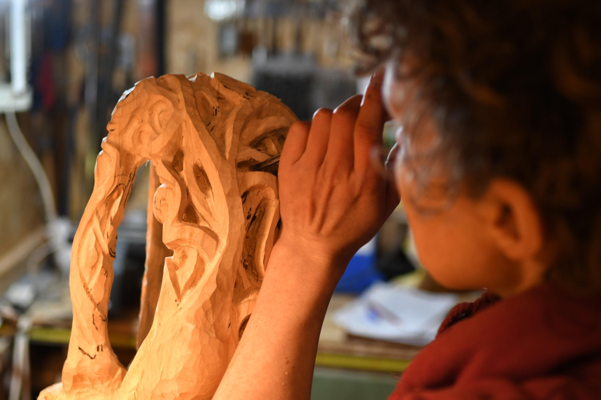 Ramona liebt Holz und Kunsthandwerk und kreiert realistische und dekorative Skulpturen. Die Beherrschung der technischen Geste ermöglicht ihm eine intuitive Herangehensweise an seine Arbeit. Dieses intuitive und gleichzeitig konkrete Universum ermöglicht es uns, zu sammeln und uns bewusst zu werden, was wir sind, was wir wollen und was wir können. Diese Arbeit ist Teil eines großen Ganzen, in dem wir das Wesentliche herausfinden und es dann teilen und weitergeben können.