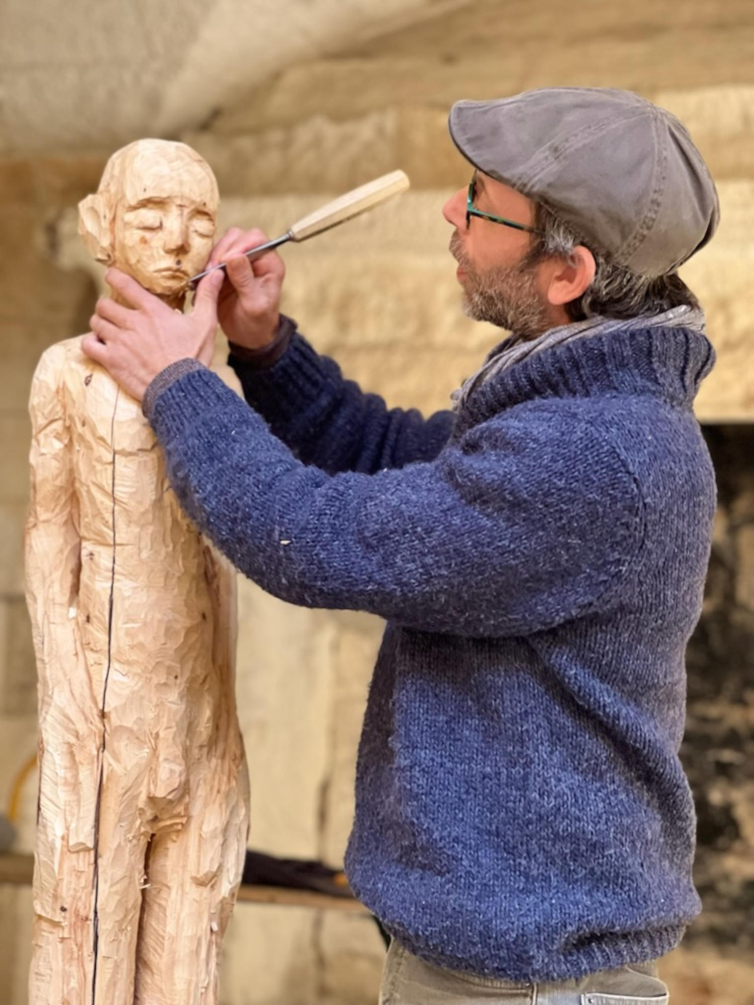 Workshop, an dem zwei Bildhauer teilnehmen. Kommen Sie und entdecken Sie die starken Werke von Ramona und Vincent in Pernes les Fontaines.